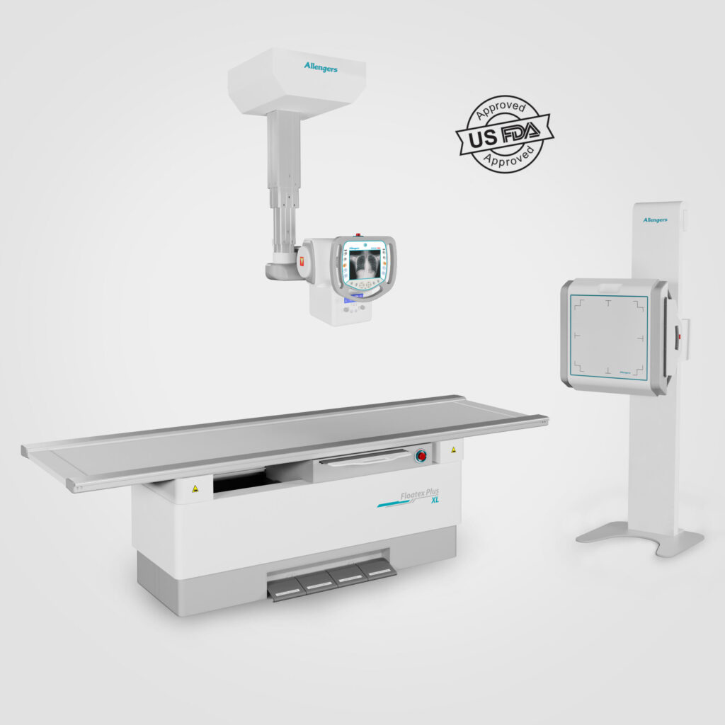 El Digix CSA ADV es la versión más avanzada de la línea de rayos X fijo de Allengers. Incluye pantalla táctil integrada en el soporte del tubo para visualización de parámetros e imagen adquirida, y mesa Floatex ADV con 6 movimientos.