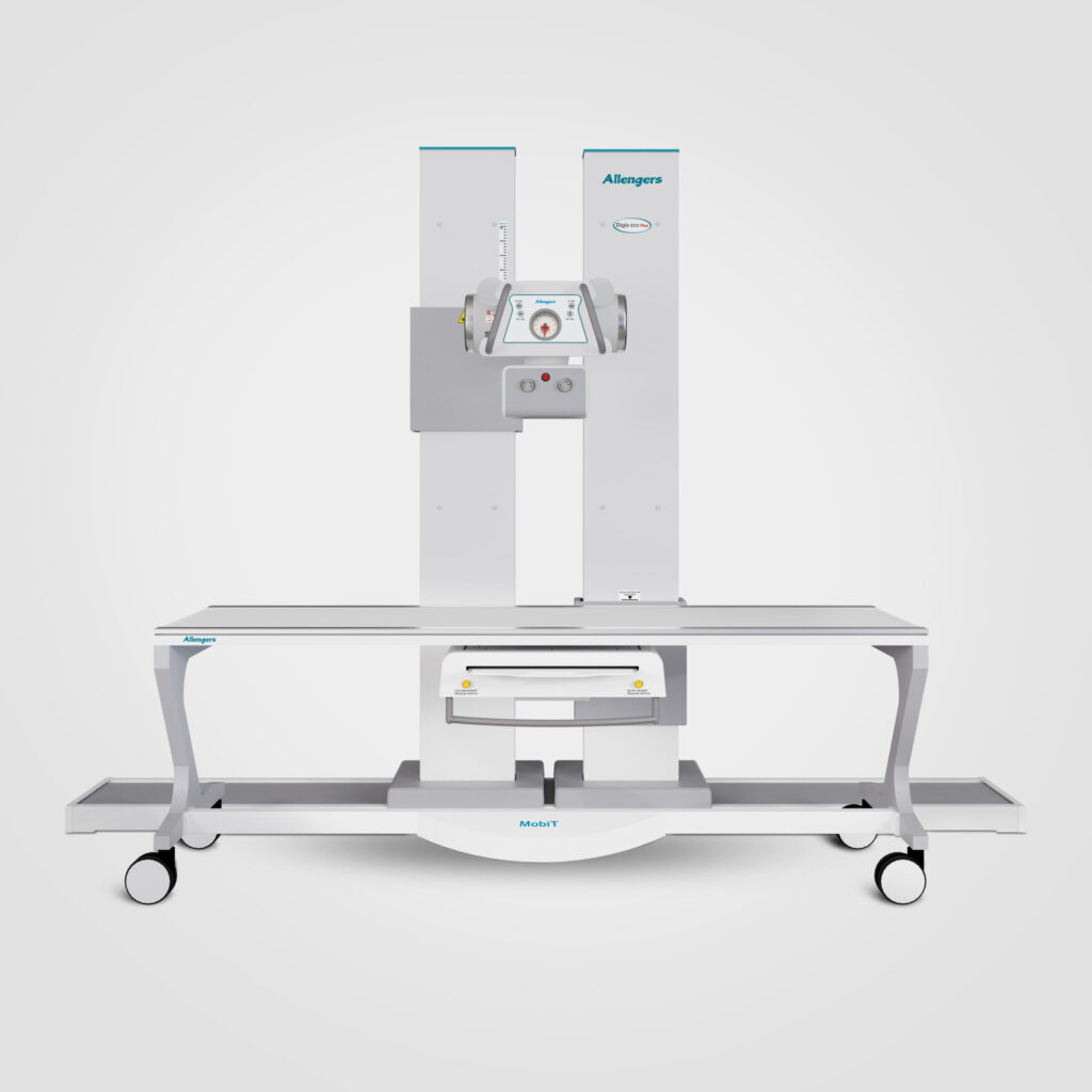 El DigiX Eco Plus es la solución más económica de Allengers para radiografía digital. Su diseño sin techo (ceiling free) permite instalación en salas pequeñas sin necesidad de rieles en el techo.