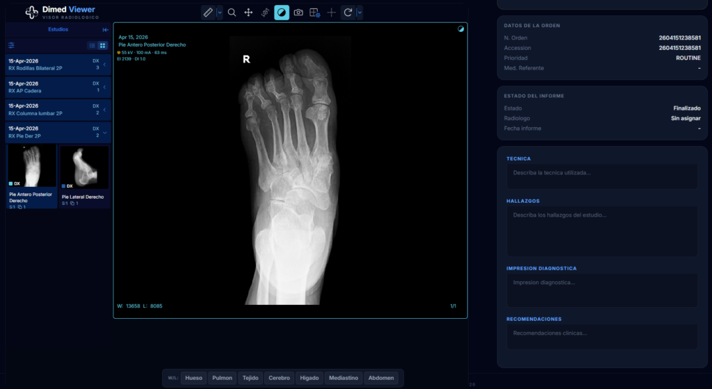 El RIS de Dimed Healthcare gestiona el flujo completo de trabajo del departamento de imagenología, desde la solicitud del estudio hasta la entrega del informe final.